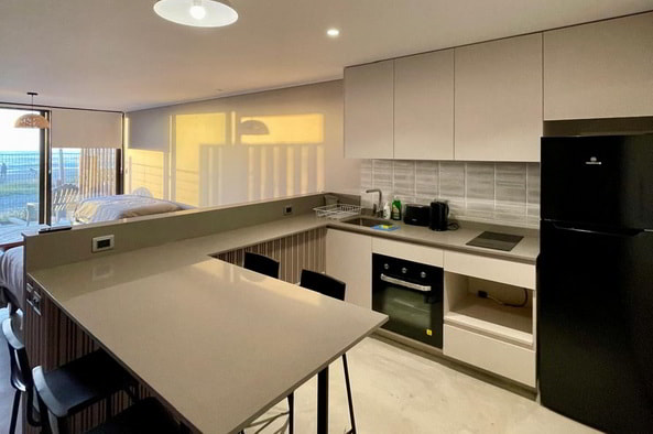 Departamentos de 42 m² con vista al mar; con espacios funcionales, cómodos y bien distribuidos. Equipado con dos camas individuales y una cama King, además de baño privado con shower en receptáculo, toallas y secador de pelo. Cuenta con cocina, terraza y una ubicación insuperable, directamente sobre la playa, ideal para disfrutar del entorno y la naturaleza. Para tu comodidad, incluye wifi gratis, calefacción, cortinas black out, caja fuerte, servicio de limpieza a petición y 1 estacionamiento gratuito.